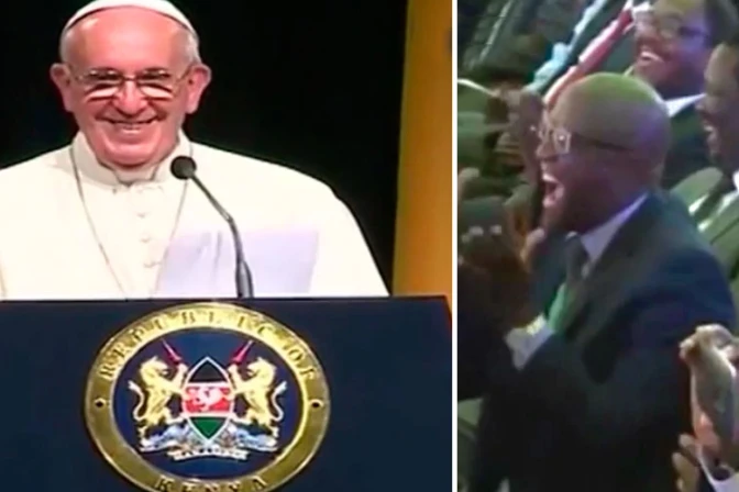 El Papa Francisco, en su primer discurso en Kenia ante las autoridades del país, habló de la violencia, el terrorismo, el cuidado de los jóvenes y del medio ambiente y en la lengua local, el suajili, dijo: "Mungu abariki Kenya!" (¡Que Dios bendiga Kenia!), lo que fue aplaudido efusivamente por los presentes.
