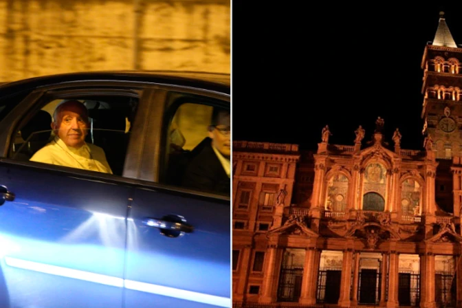El Pontífice llegó al templo romano para seguir su costumbre de visitar a la Madre antes y después de cada viaje internacional y dejarle una pequeña ofrenda floral en el altar de la Salus Populi Romana.