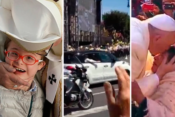 En la tarde, en la procesión de entrada a la Basílica de Guadalupe, donde celebró la Misa, el Papa Francisco llamó a un niño que tenía síndrome de down que corrió hasta él: lo abrazó y le dio un beso.