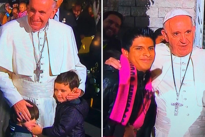 Antes de volver a la Nunciatura el Papa saludó a algunos niños, a quienes además les obsequió un rosario como suele hacer.