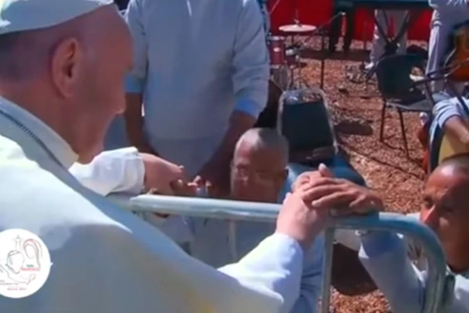 En el vídeo que acompaña esta nota se observa el cariño de dos presos, que conmovidos y con lágrimas en los ojos, no dudaron en sostener las manos del Santo Padre y arrodillarse para pedir su bendición.