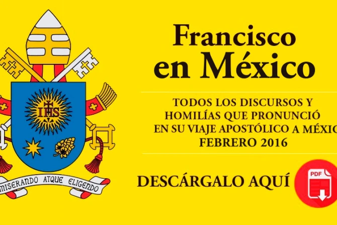 ACI Prensa ofrece a sus lectores un e-book en PDF con todas las homilías, oraciones y discursos del Papa Francisco en su histórico viaje a México.
