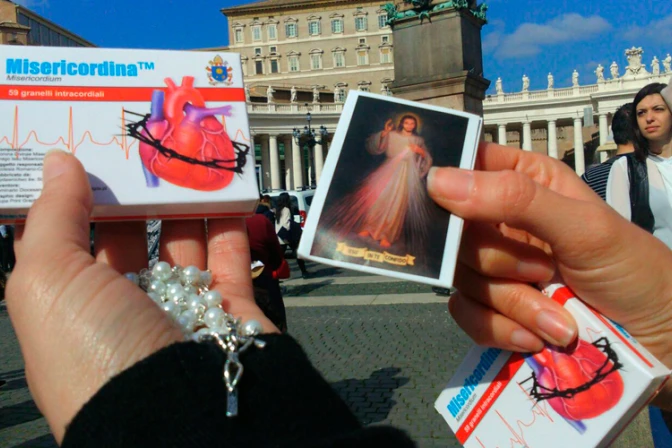 El Papa Francisco volvió a sorprender esta mañana a los fieles que asistieron al rezo del Ángelus en la Plaza de San Pedro al regalarles la "Misericordina Plus", una cajita con la corona del Rosario y una imagen de Jesús Misericordioso.