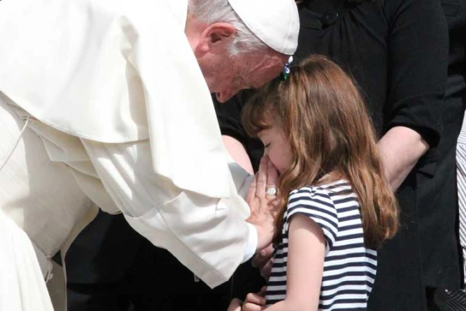 Papa Francisco bendice los ojos de Lizzy Myers, la niña que quedará ciega y sorda por enfermedad genética pic.twitter.com/4P2IFYfbI6