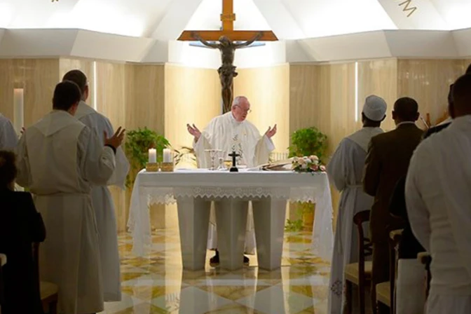 En su homilía, el Santo Padre reflexionó sobre la primera lectura tomada de los Hechos de los Apóstoles y que habla del valor de Pedro, quien tras la curación del lisiado, anuncia la Resurrección de Jesús ante los jefes del Sanedrín que, enojados, quieren darle muerte.
