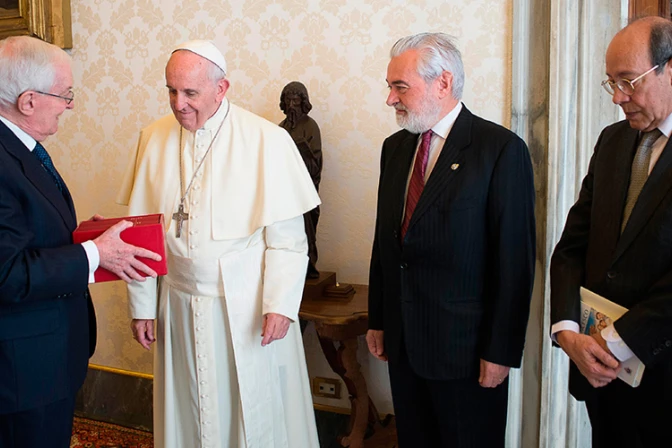 El director de la Real Academia Española también regaló al Papa un ejemplar del "Diccionario de autoridades".