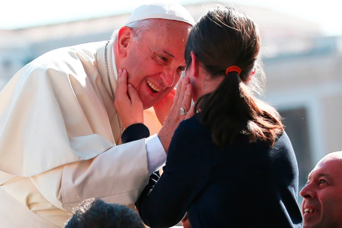 El breve pero intenso momento fue capturado por las cámaras del Centro Televisivo Vaticano y el fotógrafo Daniel Ibáñez de ACI Prensa. Las caricias de la niña conmovieron al Pontífice.