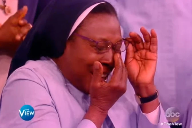 La religiosa le dijo que sonríe cuando la llaman "Whoopi" y lo asume con naturalidad porque para ella la única celebridad real es Dios. En ese momento, apareció Goldberg y comenzó la sorpresa que emocionó hasta las lágrimas a las religiosas.
