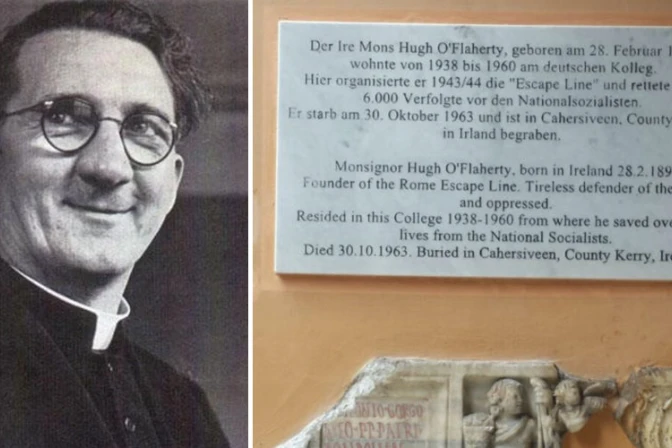 Una placa en honor a Mons. Hugh O'Flaherty, que fue fundamental para ayudar a rescatar y proteger un estimado de 6 mil personas vulnerables en Roma durante la guerra, fue descubierta el domingo 8 de mayo en una ceremonia en el Campo Santo Teutónico dentro de los muros del Vaticano.