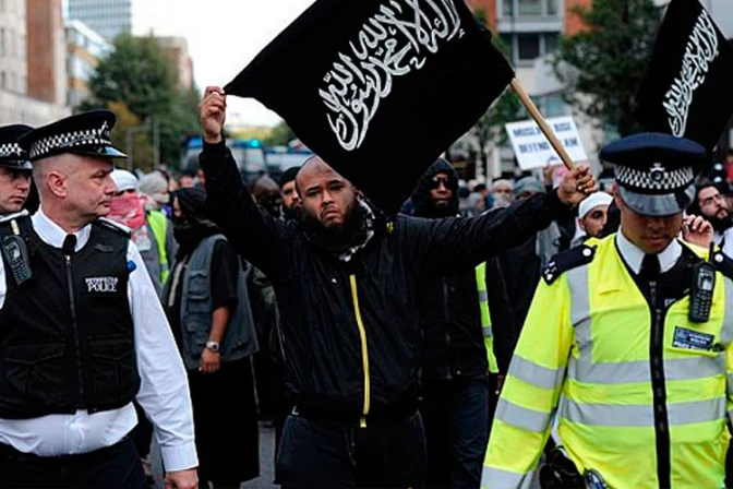Policía Británica protegiendo manifestación de apoyo al #Isis. Más ridículo no puede hacer esta decadente Europa. pic.twitter.com/yB2xIXbee5