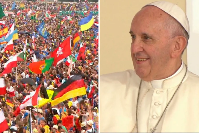 Cientos de miles de jóvenes participaron en la ceremonia de acogida presidida por el Papa Francisco en el Parque Jordan en la localidad de Blonia.