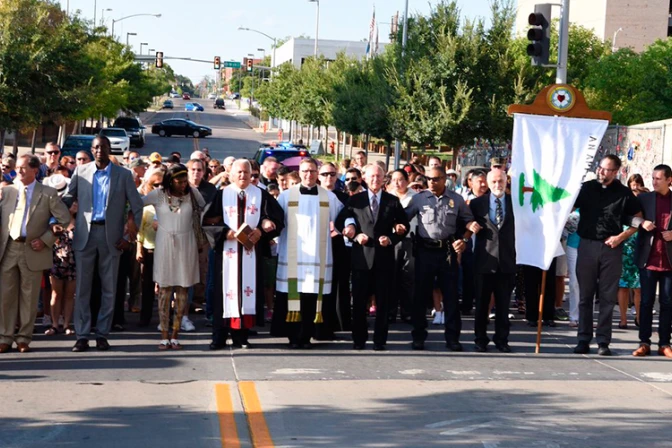 Después de estas palabras la multitud caminó a través de la ciudad, algunos de rezando el rosario, otros entonando himnos o simplemente orando. La marcha terminó en la Primera Iglesia Metodista Unida de Oklahoma, donde se realizó una oración ecuménica.