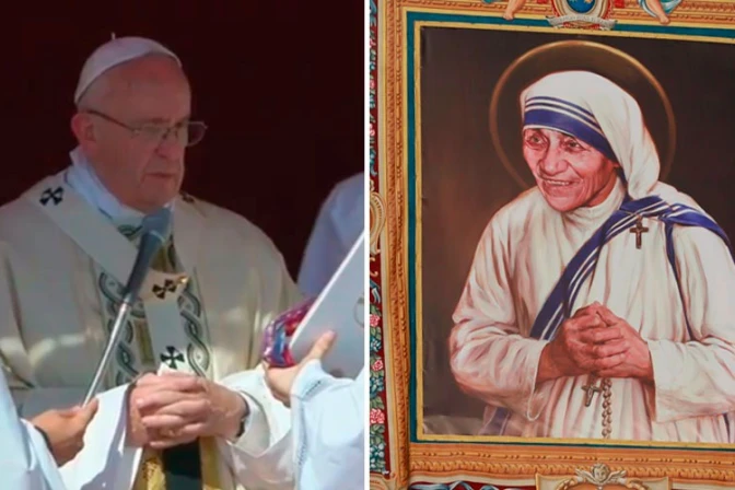 En su homilía, el Papa Francisco dijo que "Madre Teresa, a lo largo de toda su existencia, ha sido una generosa dispensadora de la misericordia divina, poniéndose a disposición de todos por medio de la acogida y la defensa de la vida humana, tanto la no nacida como la abandonada y descartada. Se ha comprometido en la defensa de la vida proclamando incesantemente que 'el no nacido es el más débil, el más pequeño, el más pobre'".