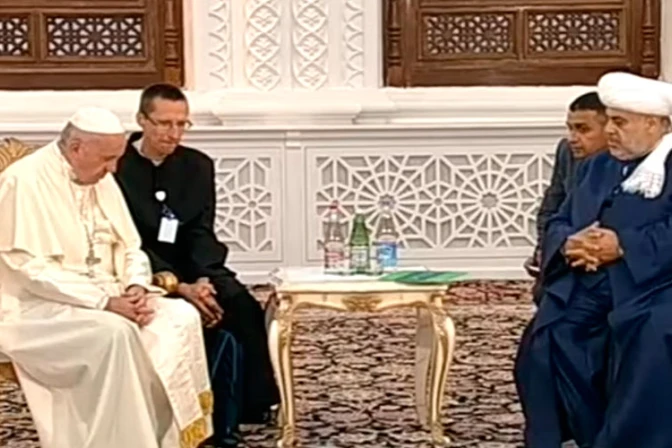 Tras las palabras del jeque musulmán en la mezquita Heydar Aliyev, el Santo Padre resaltó ante los líderes islámicos, ortodoxos y judíos presentes que "las religiones tienen precisamente una gran tarea: acompañar a los hombres en la búsqueda del sentido de la vida, ayudándoles a entender que las limitadas capacidades del ser humano y los bienes de este mundo nunca deben convertirse en un absoluto".