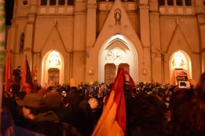 Durante el encuentro, los "grupos feministas en especial de izquierda y algunos anarquistas" alientan la profanación y quema del templo, como el sucedido en la Catedral de Mar del Plata en 2015.