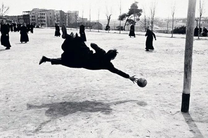 El P. Hernando utiliza este símil deportivo porque siempre ha sido un gran aficionado al fútbol, de hecho él fue el protagonista de una instantánea del famoso fotógrafo español Ramón Massat, en la que se ve a un seminarista vestido con sotana e intentando parar un gol en una portería del Seminario Conciliar de Madrid en 1960.