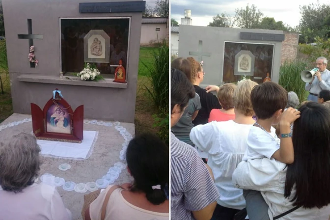 Luego de lo ocurrido, el jueves 30 de marzo se realizó un acto de desagravio a través del rezo del Rosario que fue acompañado por los vecinos del lugar y misioneros de la Virgen Peregrina de Schoenstatt.