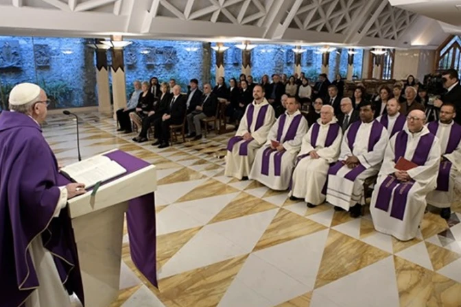 "Os invito a tomar, hoy, cinco minutos, diez minutos, sentados, sin radio, sin TV; sentados, y pensar en la propia historia: las bendiciones y los problemas, todos. Las gracias y los pecados: todo. Y mirar allí la fidelidad de que Dios ha sido fiel a su alianza, ha sido fiel a la promesa que había hecho a Abraham, ha sido fiel a la salvación que había prometido a su Hijo Jesús".
