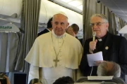 Greg Burke (Director de la Sala de Prensa del Vaticano): Aquí hay periodistas que hacen el viaje por primera vez y también quienes llevan ya casi cien viajes, o más de cien creo. No sé si usted -se dirige al Papa- sabe cuántos viajes internacionales ha hecho.