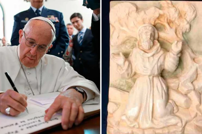 El bajo relieve que regaló el Papa representa el momento en que el Santo recibió los estigmas de Cristo en las manos, en los pies y en el costado.