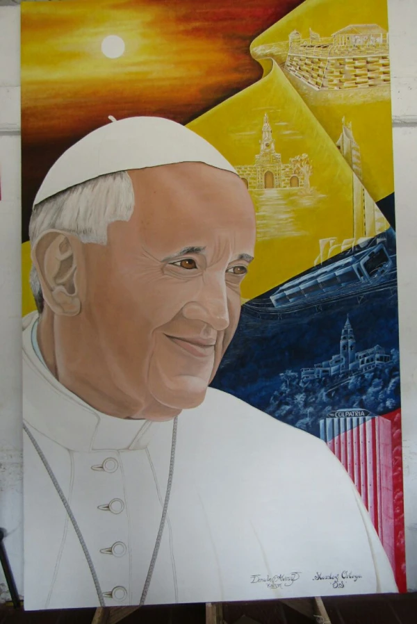 Óleo del Papa Francisco realizado por Darwin Germán Álvarez Díaz y Yackson Stanley Ortega Jiménez.