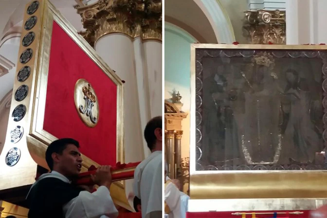 Este sábado un cuadro de la Virgen del Rosario de Chiquinquirá fue llevado en procesión y entronizado en la Catedral Primada de Bogotá (Colombia), templo que el Papa Francisco visitará el próximo jueves 7 de septiembre.