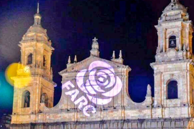 Durante el lanzamiento del partido político de la guerrilla Fuerzas Armadas Revolucionarias de Colombia (FARC) fue proyectado su nuevo logo sobre la Catedral Primada de Colombia, en Bogotá, lo que generó controversia entre los fieles católicos.