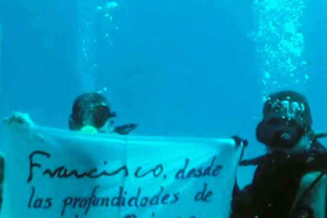 Dos buzos de las fuerzas armadas colombianas enviaron un especial saludo al Papa Francisco que llegará al país sudamericano el miércoles 6 de septiembre.