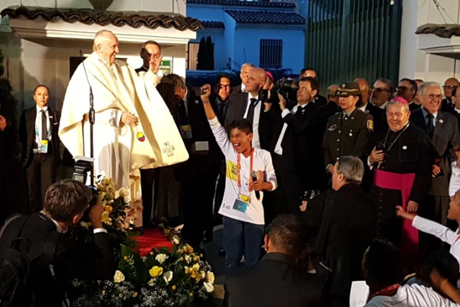 Al llegar a la Nunciatura Apostólica en Bogotá, Colombia, el Papa Francisco animó a los jóvenes a que no se dejen robar "la alegría y la esperanza".