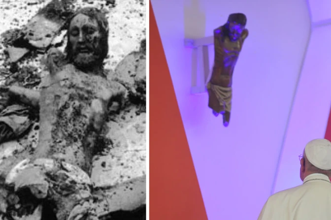 El Cristo de Bojayá representa "el dolor y el sufrimiento del pueblo, simboliza los proyectos de vida fracturados de las personas y las comunidades y también refleja el dolor de la sociedad colombiana", señala Cáritas Colombiana en su boletín de prensa.