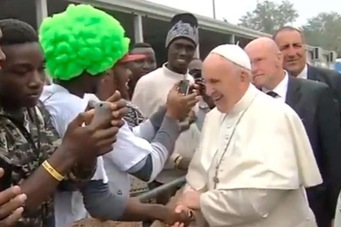 Haciendo gala de su buen humor, el Papa Francisco bromeó con uno de los inmigrantes africanos a los que visitó el domingo 1 de octubre en Bologna, en el marco de su visita pastoral a esta localidad italiana.