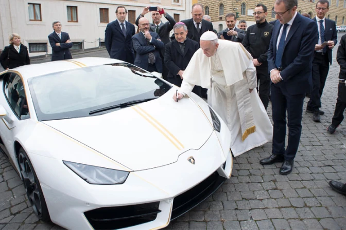 La donación tuvo lugar el miércoles 15 de noviembre, antes de la Audiencia General, frente a la Casa Santa Marta, en el Vaticano. Para poder destinarlo a dichos fines sociales, el vehículo deportivo será subastado por la casa Sotheby's.