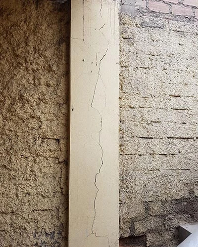Rajadura en una de las paredes del templo / Foto: P. Pasco