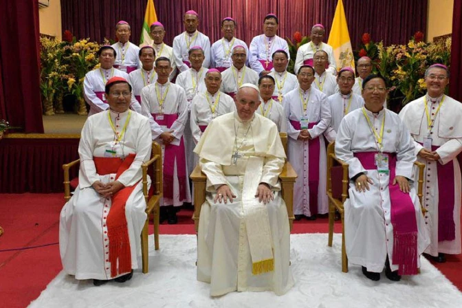Durante la visita del Papa Francisco a Myanmar, los cardenales y obispos del país sorprendieron a los fieles vistiendo en público de blanco, un color usualmente reservado para el Pontífice.