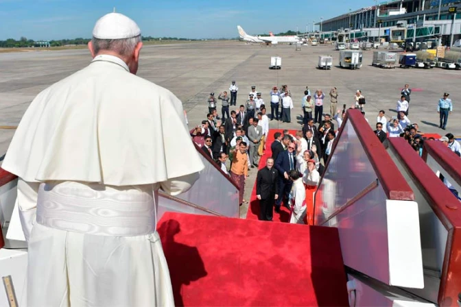 El Papa Francisco dio inicio a su segunda etapa del viaje a Asia, y después de Myanmar (antigua Birmania), llegó a Bangladesh. Después de ser recibido en el aeropuerto de Daca, la capital, y de rendir homenaje en el monumento de los mártires nacionales, se trasladó hasta el Palacio Presidencial para mantener un encuentro con las autoridades del país, la sociedad civil y el cuerpo diplomático.