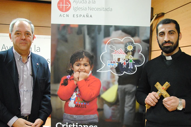 En la presentación del proyecto estaba el P. Naim Shoshandy, sacerdote siro católico de Irak que explicó cómo pudo escapar de la ciudad de Qaraqosh (Irak) en el año 2014, cuando tropas del Estado Islámico la invadieron.