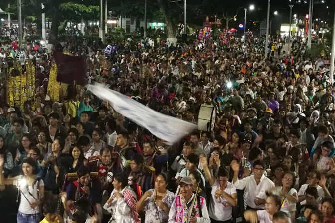 La vigilia de oración se realiza en la plaza de armas de Puerto Maldonado, capital de la región de Madre de Dios, en la selva suroriental del Perú.
