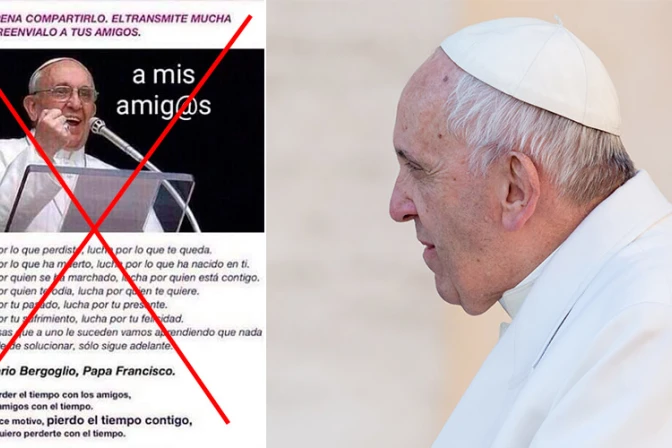 "Este tipo de textos que circulan por internet atribuidos al Papa Francisco generalmente no dicen en qué fecha y con qué ocasión dijo esas palabras. Porque en tal caso sería fácil para cualquiera ir al sitio internet oficial de la Santa Sede y comprobar si realmente se trata de palabras del Papa", explicó VaticanNews, el sitio informativo de la Santa Sede, en una publicación en Facebook.