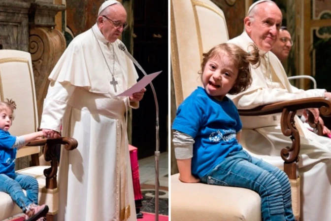 La foto de una niña con #síndromedeDown sentada junto al #PapaFrancisco ha comenzado a circular en los últimos días en las #redessociales. @Pontifex_es pic.twitter.com/9W5WZdflsm