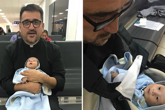 Una fotografía de un sacerdote católico que sostiene en sus brazos a un bebé con síndrome de Down, como si fuera su propio hijo, ha conmovido a miles de personas en redes sociales.