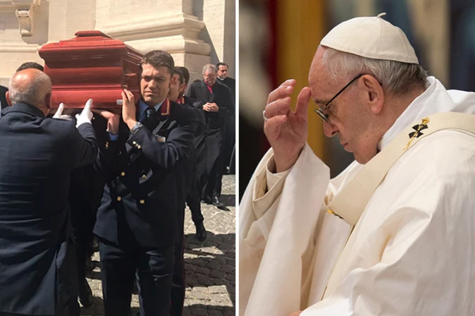 El Papa Francisco encomienda el alma del Cardenal Dario Castrillon Hoyos en la Basilica de San Pedro. https://t.co/SdZnMkwtrA