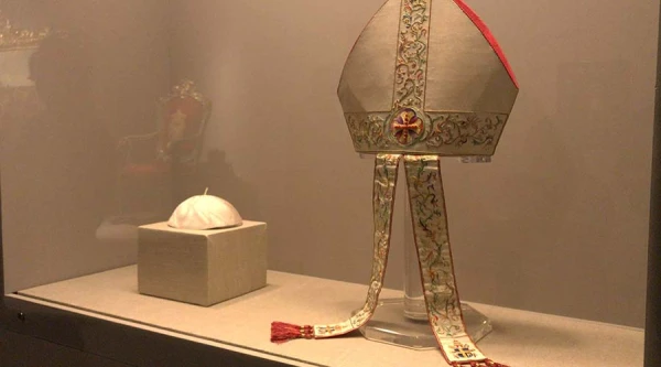 Entre los objetos se encuentran también un solideo y una mitra de San Juan Pablo II.