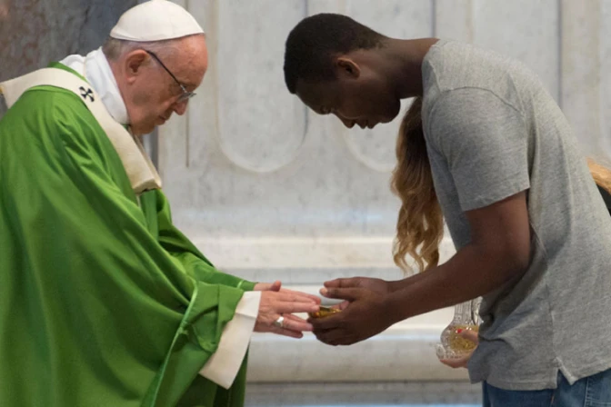 Ante cerca de las 200 personas, entre los que había numerosos refugiados, migrantes y otros desfavorecidos, el Pontífice quiso recordar de forma especial "a los migrantes y a los refugiados, que continúan llamando a las puertas de las naciones que gozan de un mayor bienestar".