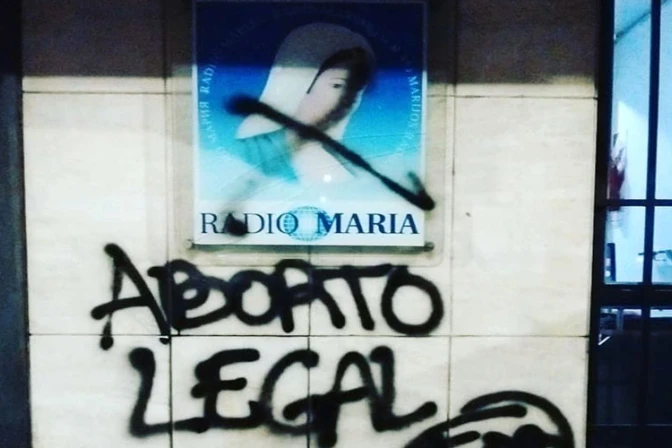 El 26 de julio desconocidos pintaron parte de la fachada de Radio María Argentina, ubicada en la ciudad de Córdoba, con la consigna de "aborto legal".