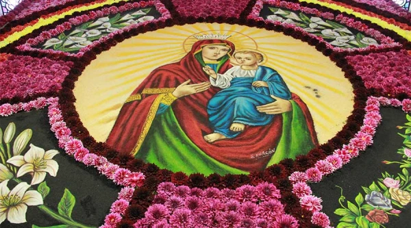 Las calles de la ciudad fueron adornadas con alfombras de aserrín pintado, arena y diversos tipos de flores.