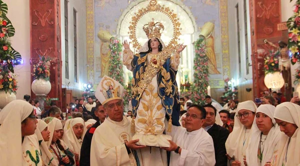 Procesión de la Virgen de la Caridad tras la celebración de la Misa. Foto: Diócesis de Tlaxcala.