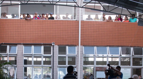 Los pacientes mirando por las ventanas hacia la capilla / Foto: Cortesía Michelly Emily J Souza