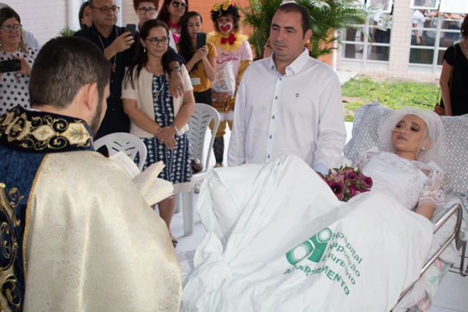 La reciente boda de una joven brasileña con cáncer terminal en un hospital ha conmovido las redes sociales, debido al testimonio de amor y fidelidad de los novios "en la salud y en la enfermedad".