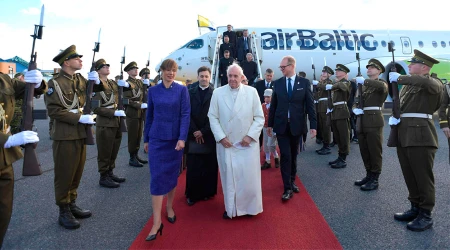 El Papa Francisco habló ante las autoridades civiles, la sociedad civil y el cuerpo diplomático a su llegada a la capital de Estonia, Tallin.