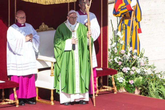 En una plaza de San Pedro llena de fieles, frente a la Basílica vaticana, y en un día especialmente luminoso, el Papa Francisco presidió la Misa de apertura del Sínodo, Misa de gran solemnidad que se desarrolló en gran parte en latín.